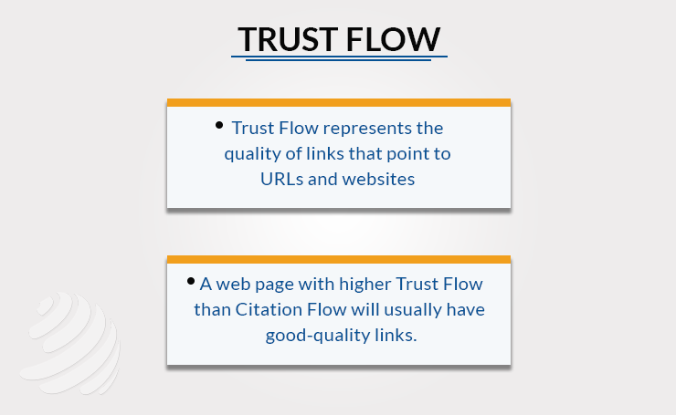 Trust Flow is a metric developed by Majestic that assesses the quality of a webpage based on the trustworthiness of the sites linking to it. It measures the credibility and reliability of backlinks, providing insight into a site’s authority. Higher Trust Flow scores indicate stronger, more reputable links.