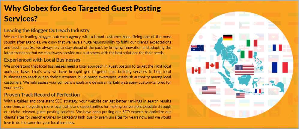 Essentially, with country-specific blogger outreach, you will be tailoring your content as well as geo targeted guest post services to local cultures and languages, which will help you build trust and resonate with international clients.
