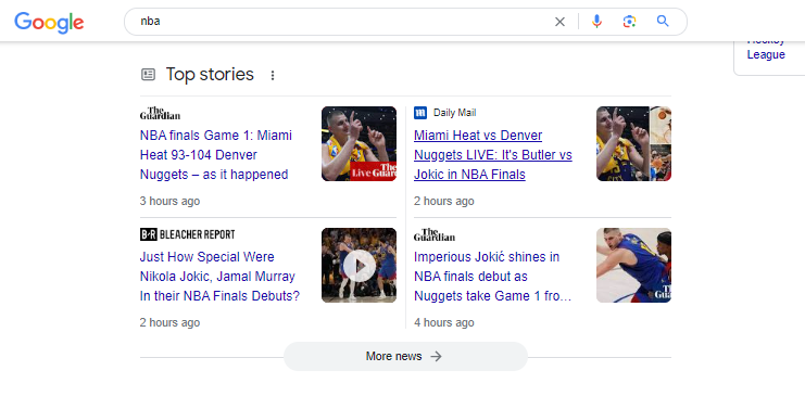 Top stories boxes highlight newly published items on a specific topic. For noteworthy issues, these generally appear in the organic results.